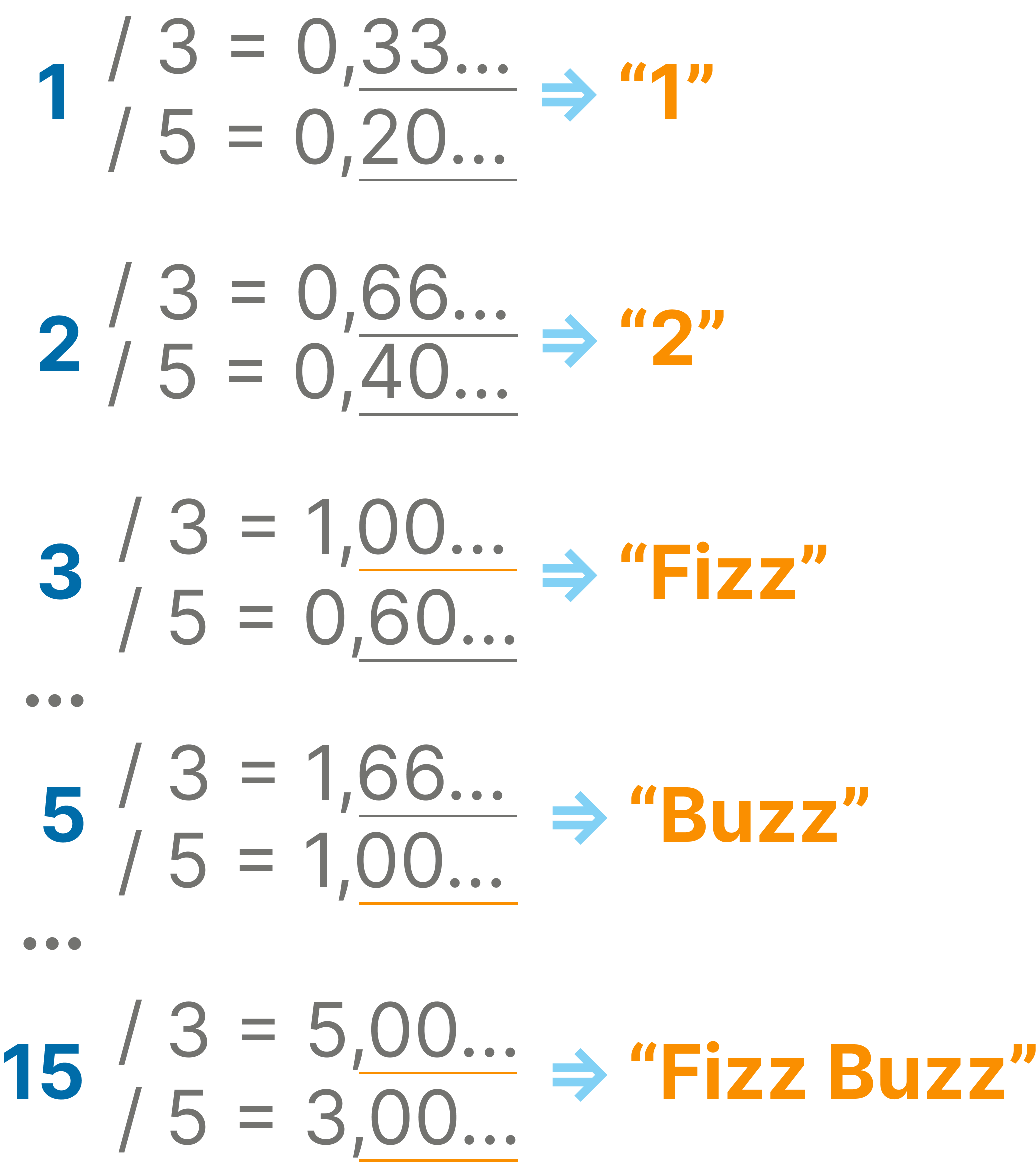 assert.strictEqual(fizzBuzz(15), "Fizz Buzz"); assert.strictEqual(fizzBuzz(6), "Fizz"); assert.strictEqual(fizzBuzz(10), "Buzz"); assert.strictEqual(fizzBuzz(7), "7");